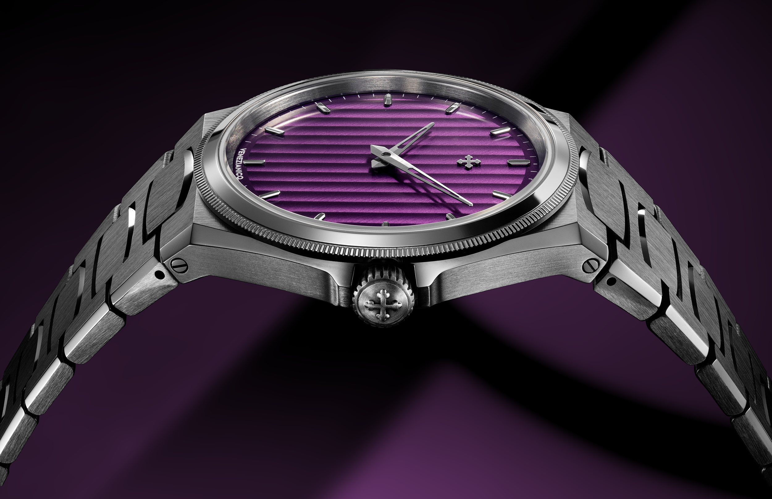 Arsenale celebra l’eleganza dell’essenziale con il suo quadrante Côtes de Genève verticale. Le linee incise riflettono giochi di luce unici e raffinati, trasformando la sobrietà di un quadrante puro in uno stile senza tempo.