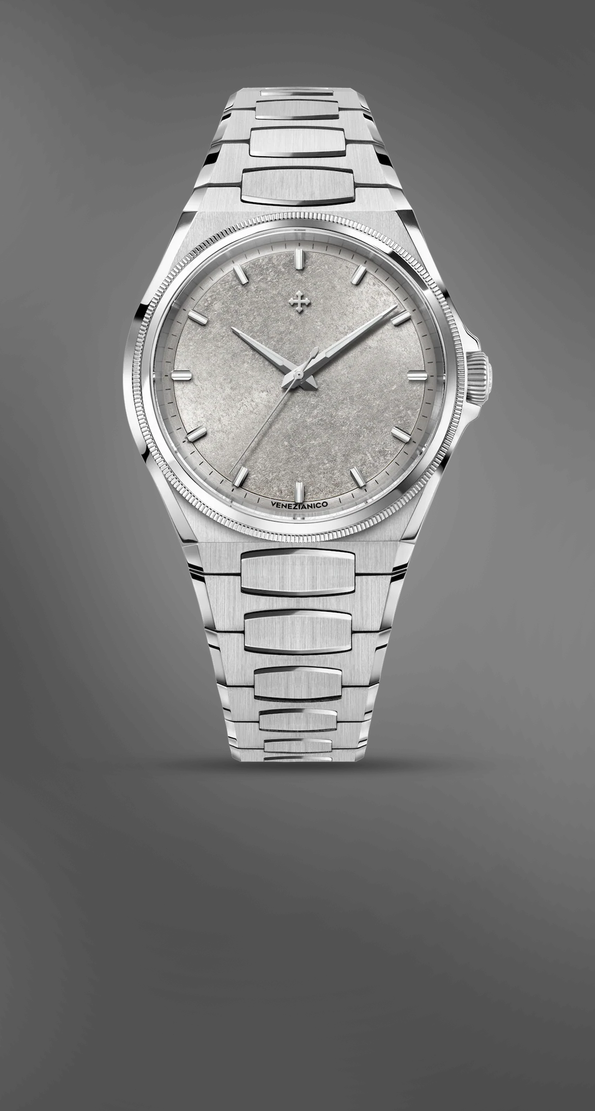 Arsenale è il segnatempo che trae ispirazione dallo storico cantiere navale di Venezia, simbolo di potenza e innovazione. Con la sua cassa ultrasottile e il bracciale integrato, unisce eleganza senza tempo e design contemporaneo, trasformando la tradizione in visione moderna.