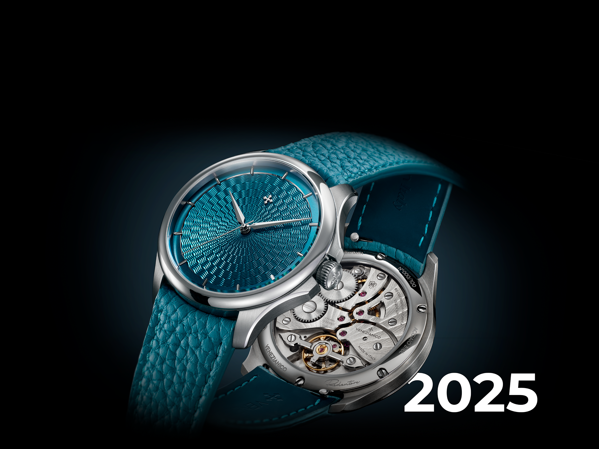 È il primo modello a montare il calibro proprietario V5000 Made in Italy, sviluppato in collaborazione con Fausto Berizzi, ingegnere di OISA 1937, all’interno di un percorso progettuale condiviso.